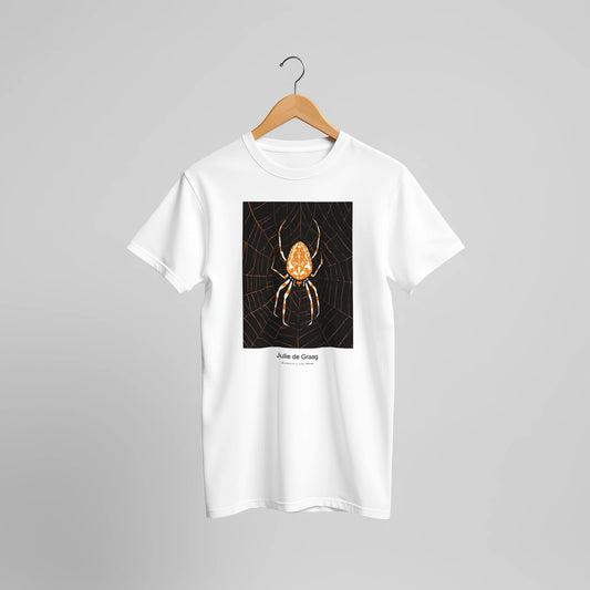 Spider in a web (1918) by Julie de Graag. Custom Print on a 100% Airlume Combed and Ring-Spun Cotton Unisex Crewneck T-shirt Optimised Aspect Ratio.