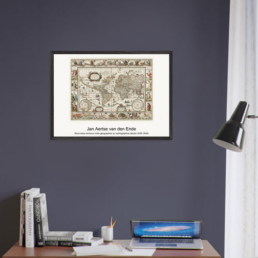 Nova totius terrarum orbis geographica ac hydrographica tabula (1635-1649) by Jan Aertse van den Ende. Archival Print on Museum Quality Matte Paper. Premium Wood Framed Wall Art. Original Aspect Ratio