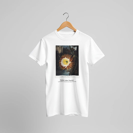 The Queen-Plant from The Temple of Flora (1807) by Robert John Thornton. Custom Print on a 100% Airlume Combed and Ring-Spun Cotton Unisex Crewneck T-shirt Optimised Aspect Ratio.