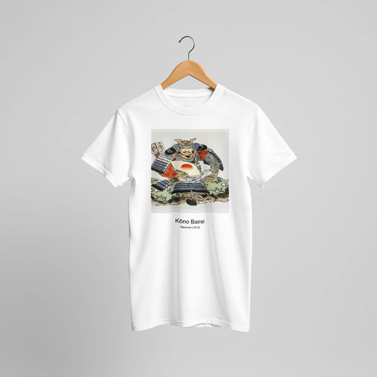 Samurai (1913) by Kōno Bairei. Custom Print on a 100% Airlume Combed and Ring-Spun Cotton Unisex Crewneck T-shirt Optimised Aspect Ratio.
