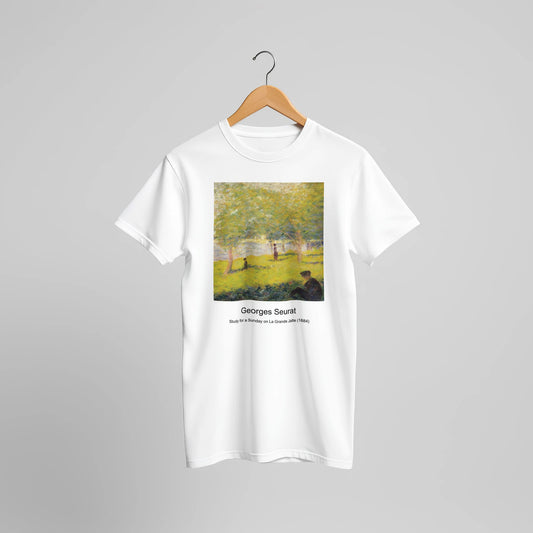 Study for a Sunday on La Grande Jatte (1884) by Georges Seurat. Custom Print on a 100% Airlume Combed and Ring-Spun Cotton Unisex Crewneck T-shirt Optimised Aspect Ratio.
